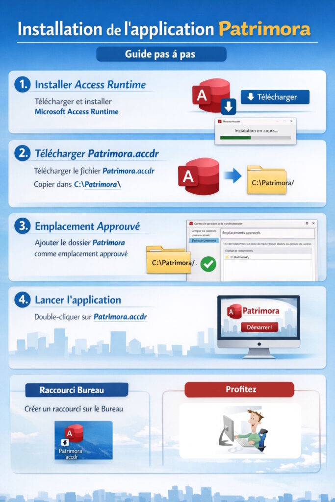 Patrimora nécessite Microsoft Access Runtime pour fonctionner.